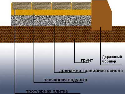 Гравийная подушка. На песчанную подушку укладывают гравий толщиной 10-15см, трамбуют.